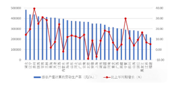 圖 5 2025 年上半年各地區(qū)建筑業(yè)勞動(dòng)生產(chǎn)率及其增長(zhǎng)情況